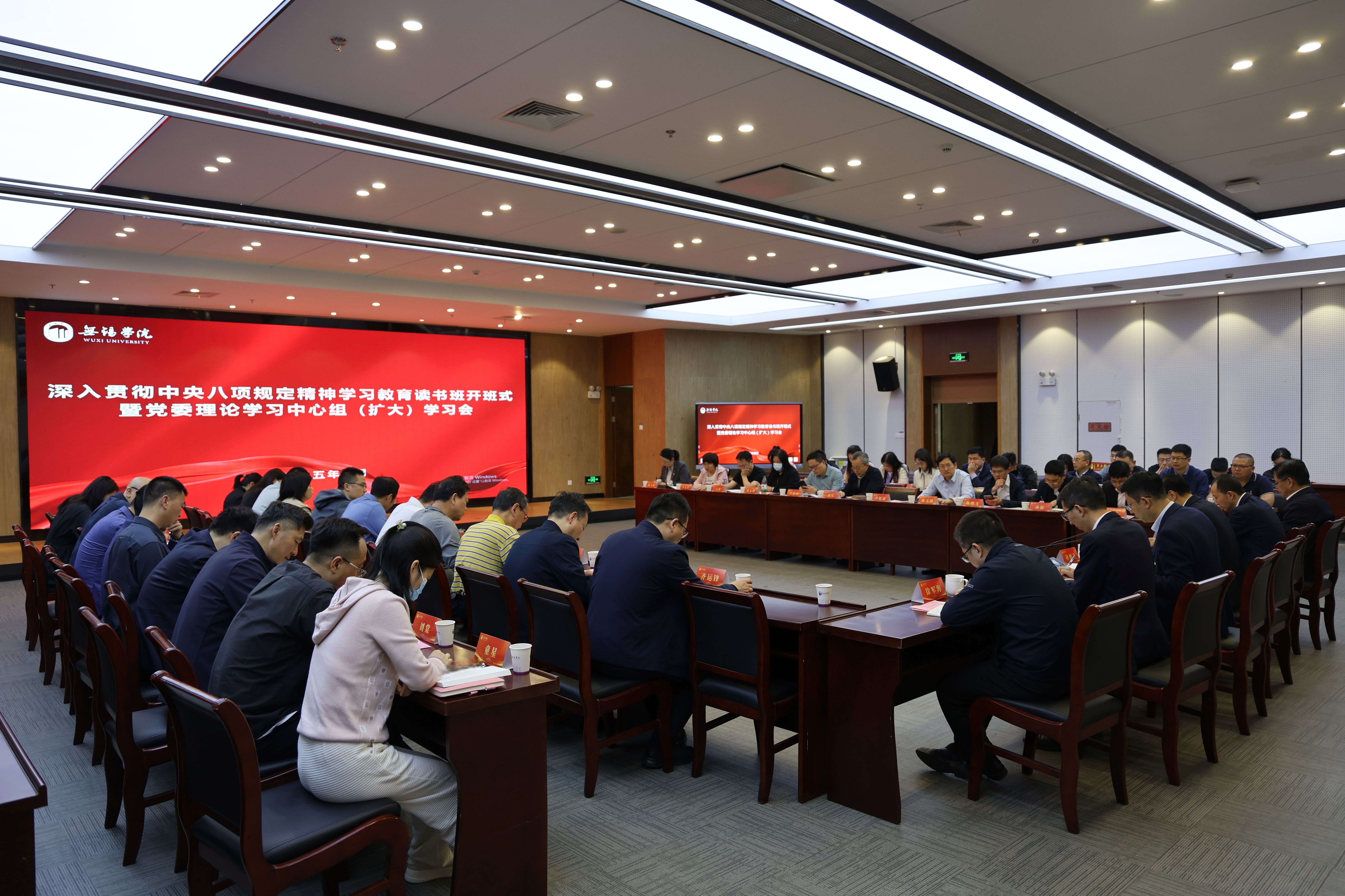 为深入学习贯彻习近平总书记关于党的作风建设的重要论述,贯彻落实中央八项规定精神,进一步加强党风廉政建设,推动全面从严治党向纵深发展,4月9日下午,学校在大礼堂103会议室举行深入贯彻中央八项规定精神学习教育读书班开班式暨党委理论学习中心组(扩大)学习会,在校校领导、全校中层干部共计60余人参加。校党委书记张永宏作开班动员,校党委副书记、校长孙雁飞主持会议。