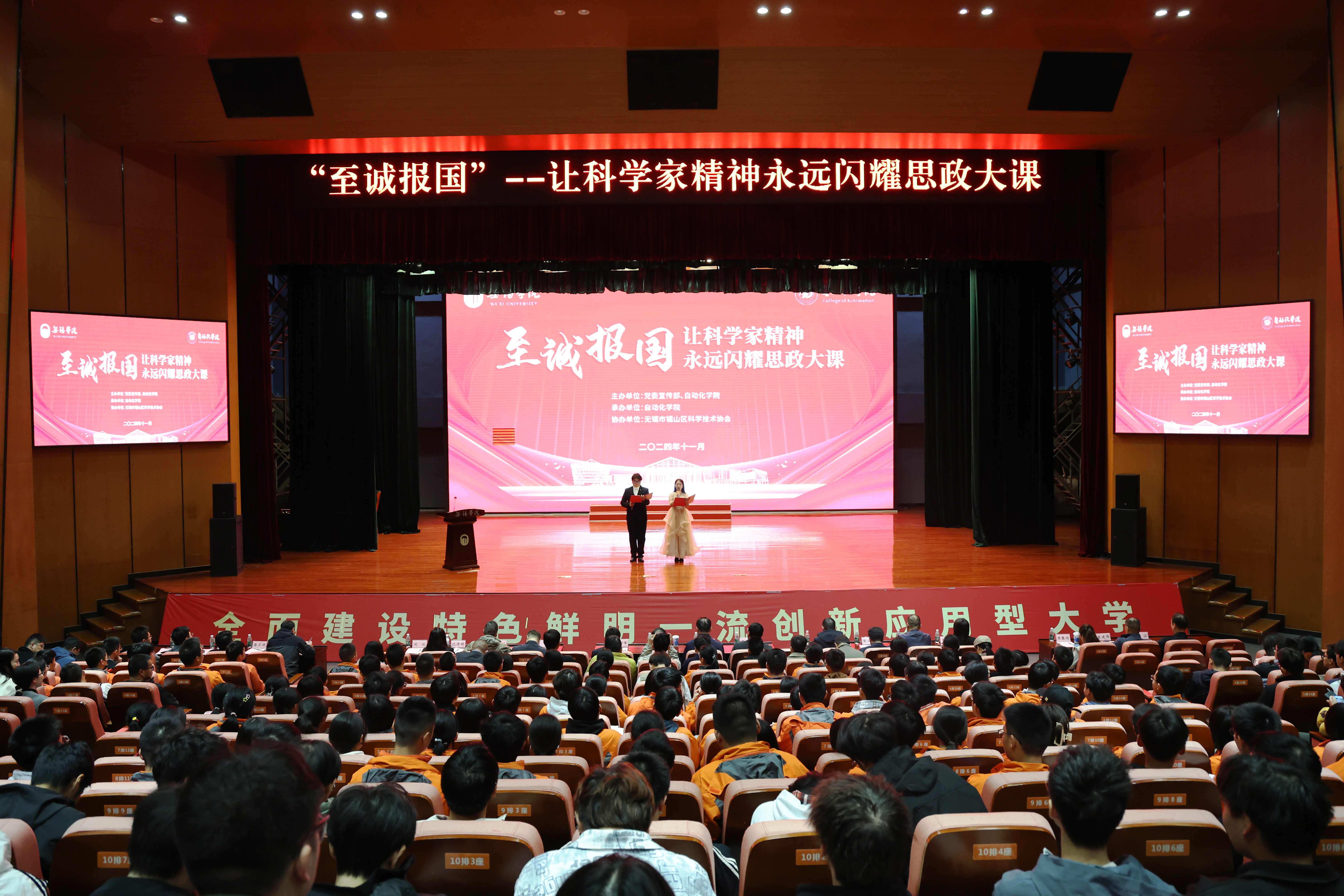 11月20日下午,无锡学院自动化学院举办“至诚报国——让科学家精神永远闪耀”思政大课。400余名青年大学生、高中生齐聚一堂,聆听科学家故事,感悟科学家精神,共享这场别开生面的思政大餐。