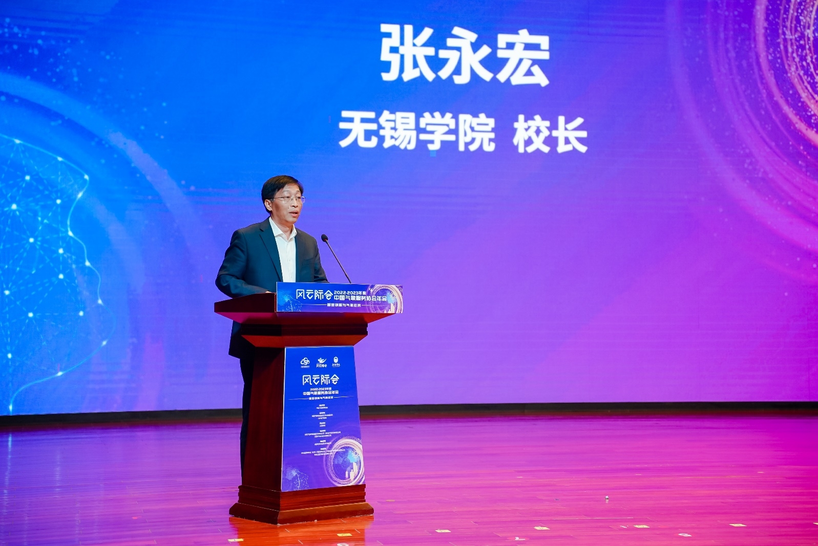 无锡学院校长张永宏在致辞中表达了对协会工作的大力支持,并表示此次大会的顺利召开,为全国气象教育科研工作者与气象企业“零距离”交流搭建了一个平台,期待大家在相互交流中进一步增进友谊、开阔视野、启迪思维、破解难题。也希望各位领导专家,为无锡学院大气学科建设和人才培养等工作建言献策。无锡学院愿与各位携手并肩汇聚起气象现代化建设的磅礴伟力。