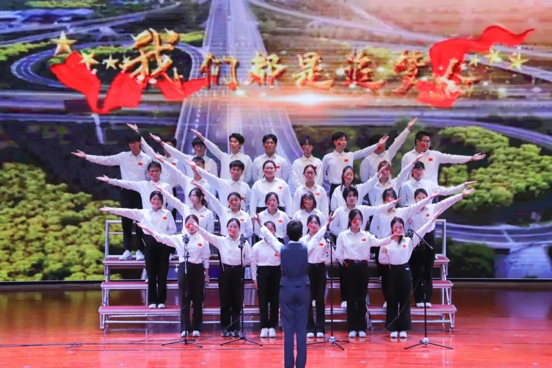 时代在进步,梦想在前行。物联网工程学院的学生们用歌曲《我们都是追梦人》和诗朗诵《丹心染就七十五,青年共谱中华图》展现一代代青年与时代同频共振,将磅礴的青春力量融入到民族复兴的伟业中去,谱写感人的奋斗赞歌。演出在慷慨激昂、豪情万丈的《祝福祖国》合唱歌声中落下帷幕。
