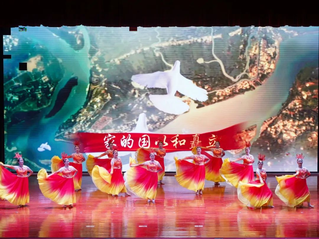 伴随着全场热烈的掌声,演出活动在舞蹈《九州同》中拉开序幕,学生们以欢快的旋律、优美的舞姿和丰富的肢体语言,展现了九州大地的繁荣昌盛和多元文化魅力。羊尖镇离退休干部党支部献上了锡剧《沙家浜》选段《定能战胜顽敌渡难关》,重温那段激情燃烧的岁月。