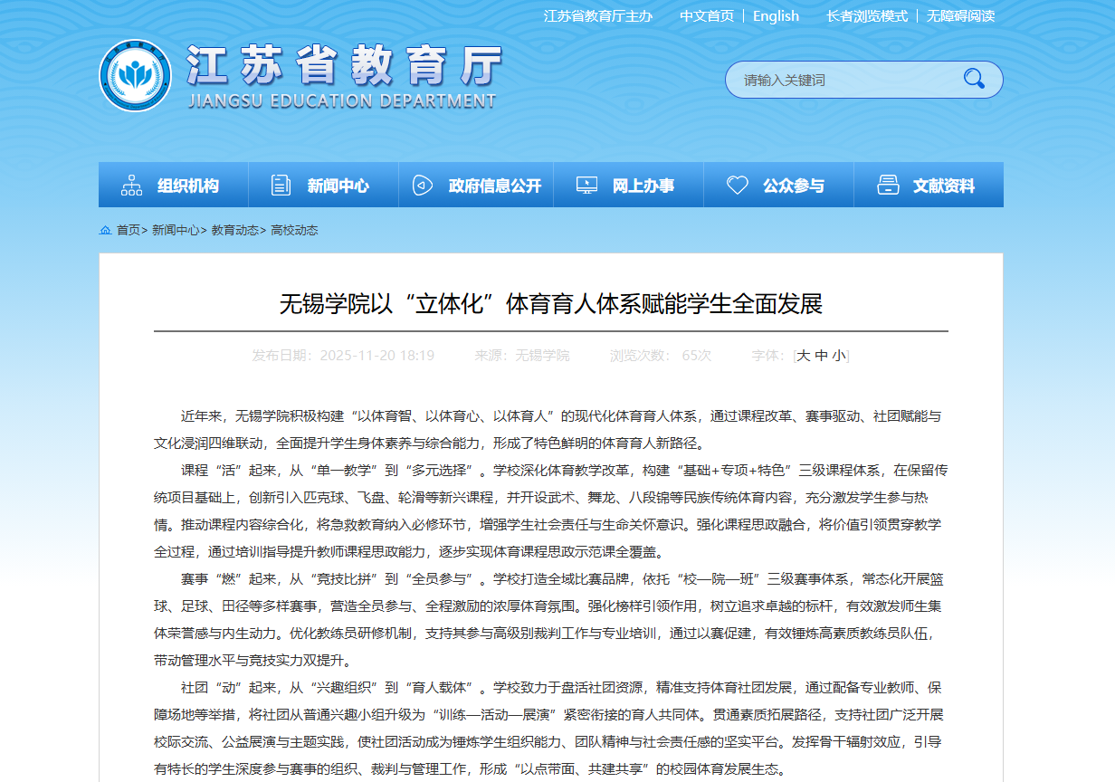近年来,无锡学院积极构建“以体育智、以体育心、以体育人”的现代化体育育人体系,通过课程改革、赛事驱动、社团赋能与文化浸润四维联动,全面提升学生身体素养与综合能力,形成了特色鲜明的体育育人新路径。