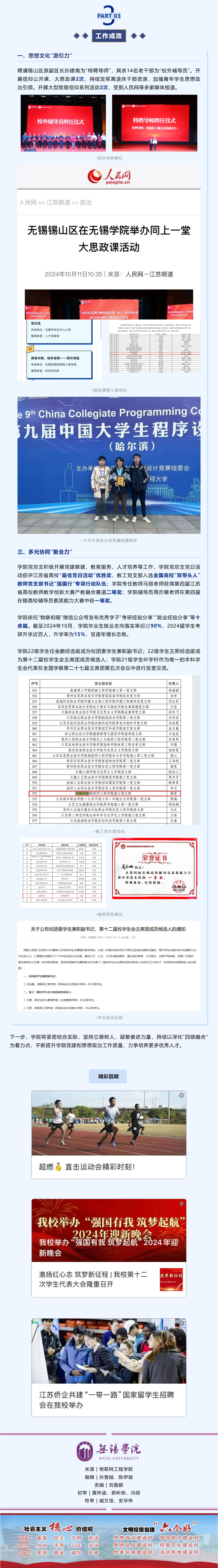 当前位置: 首页 >> 校园文化 >> 正文 “一院一品”文化建设巡礼丨深化四链融合,打造物联相锡特色育人品牌 发布日期:2024-11-07 点击: 上一篇:“一院一品”文化建设巡礼 | “护旗荣光 初心领航”——以 “三型国护队”打造红色育人工程 下一篇:我校举办“吴地雅韵”文化研习馆开馆仪式