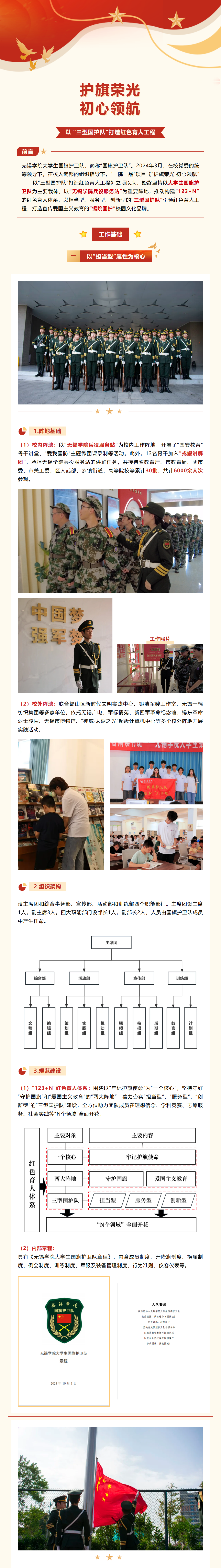 当前位置: 首页 >> 校园文化 >> 正文 “一院一品”文化建设巡礼 | “护旗荣光 初心领航”——以 “三型国护队”打造红色育人工程 发布日期:2024-11-08 点击: 上一篇:“锡院大讲堂——茅盾文化遗产与文学精神”专题讲座顺利举行 下一篇:“一院一品”文化建设巡礼丨深化四链融合,打造物联相锡特色育人品牌